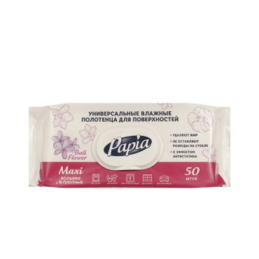 Универсальные влажные полотенца для поверхностей PAPIA Bali Flower 50шт