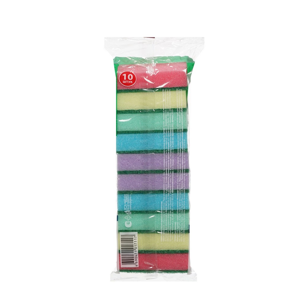 Губка для мытья посуды состоит из гигиеничных и долговечных материалов. Очень долго сохраняет форму, подходит для удаления жира и грязи. Имеет увеличенный размер и абразивную поверхность.