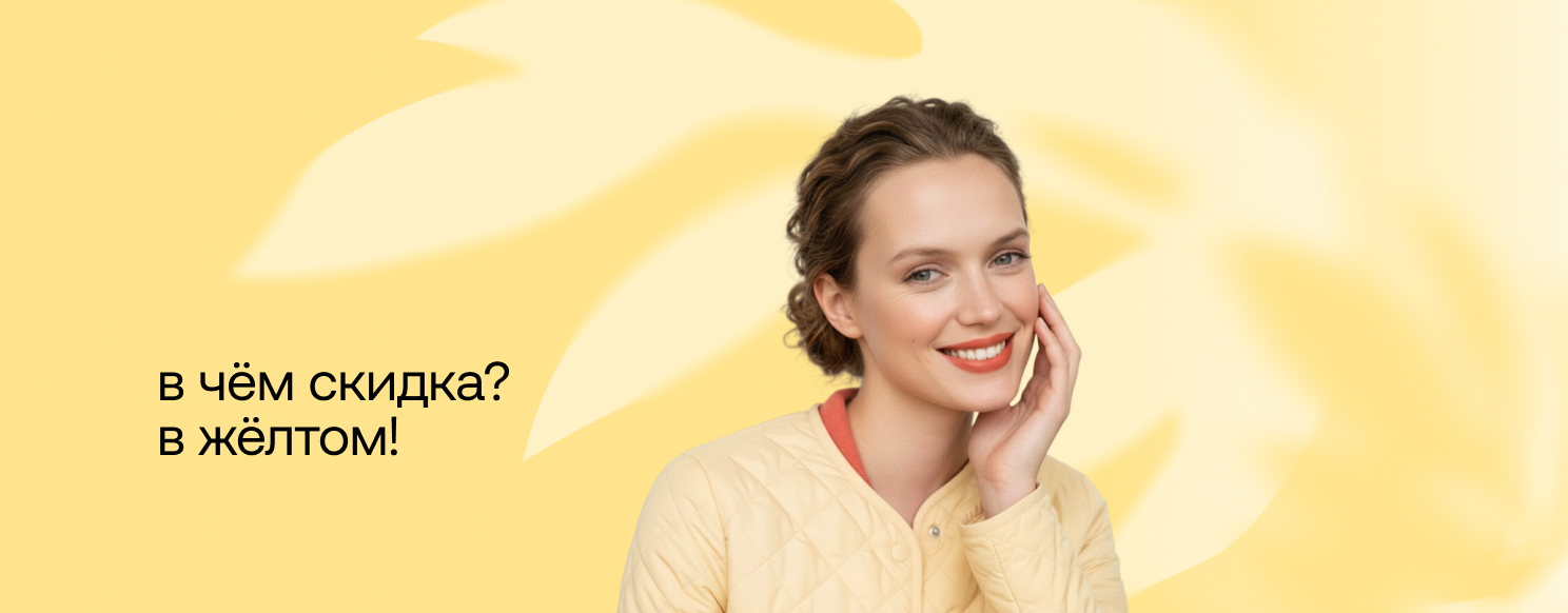 • покажи свой образ в оттенках жёлтого сотруднику и забирай скидку 30%!