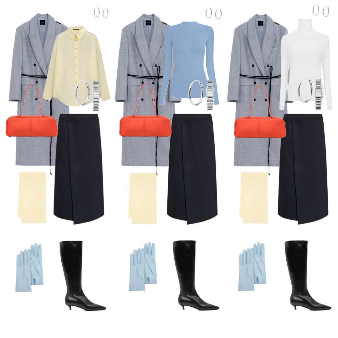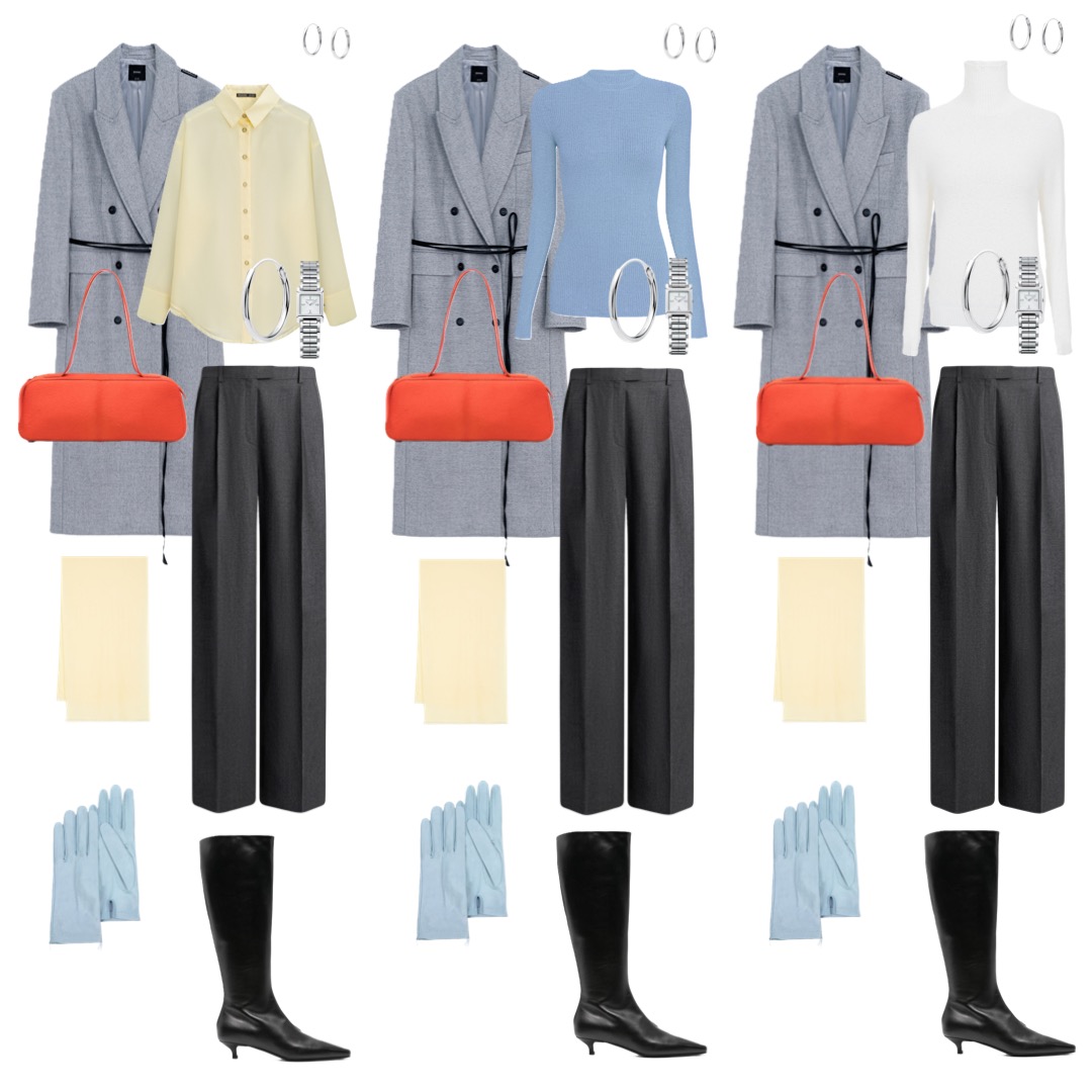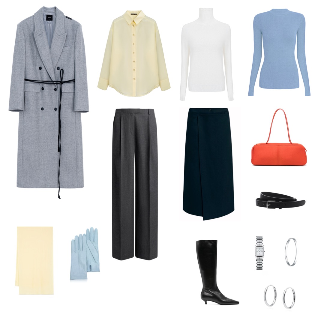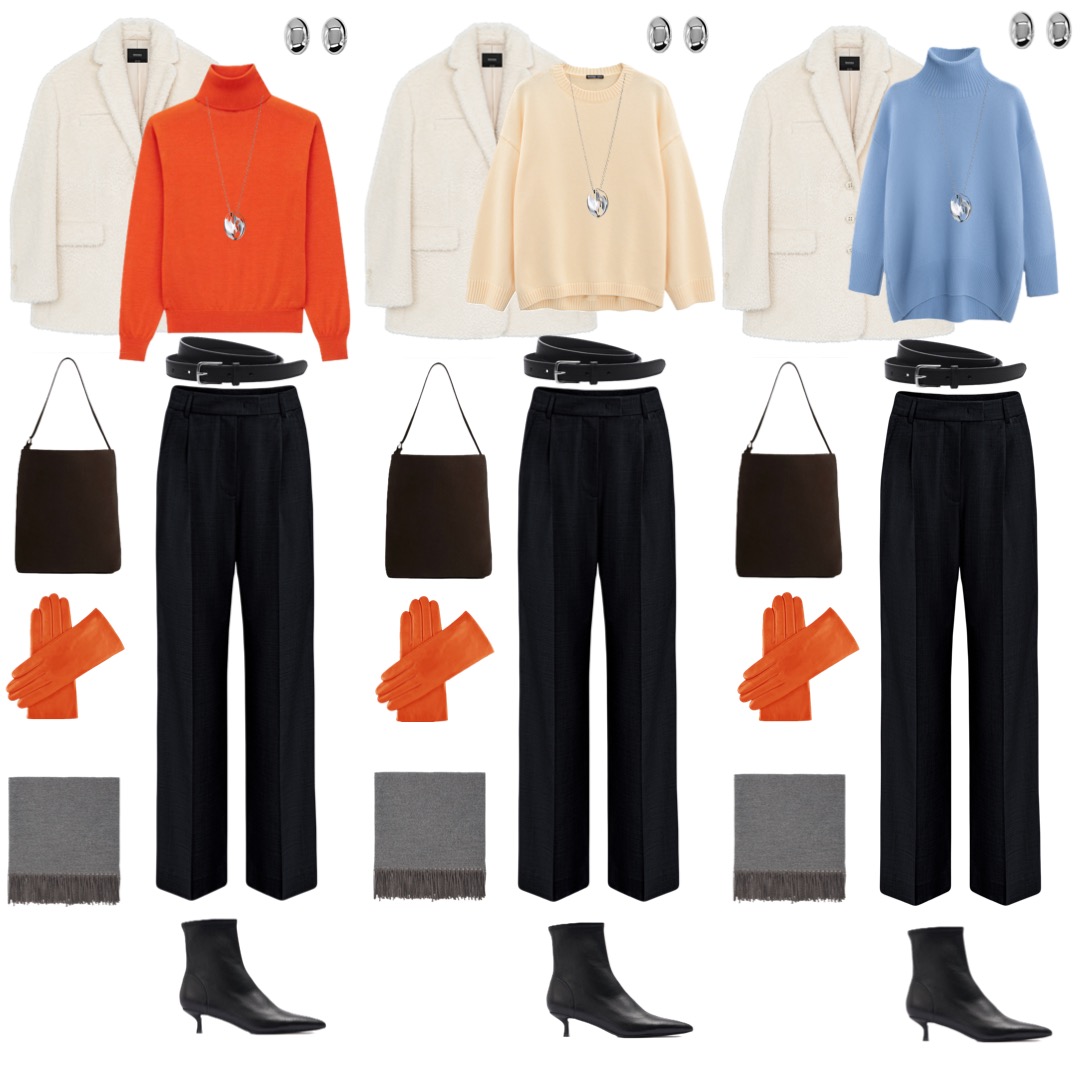 Подойдёт для офиса с нестрогим дресс-кодом. На основе капсулы можно собрать 6 образов: по одному на каждый рабочий день. Как сочетать вещи из капсулы – слово стилисту: