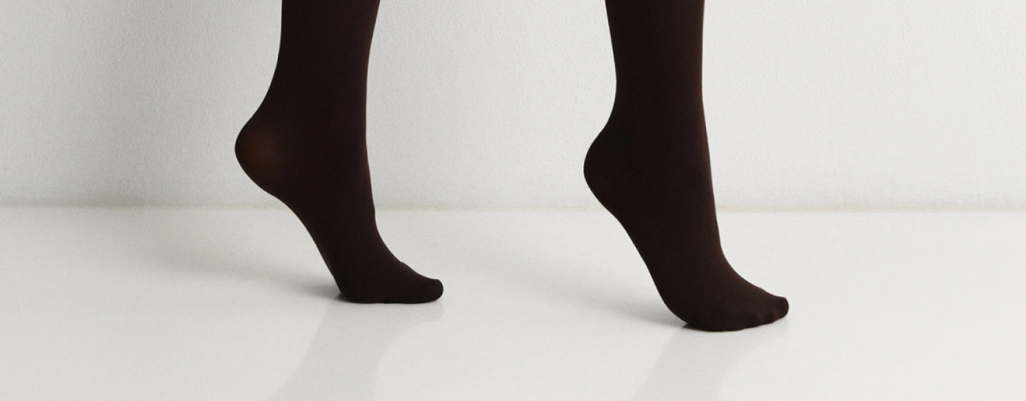 Колготки цвета шоколада, мягко сочетаются с одеждой и обувью, не создают резких контрастов и не «делят» тело пополам. Силуэт становится более стройным и вытянутым.