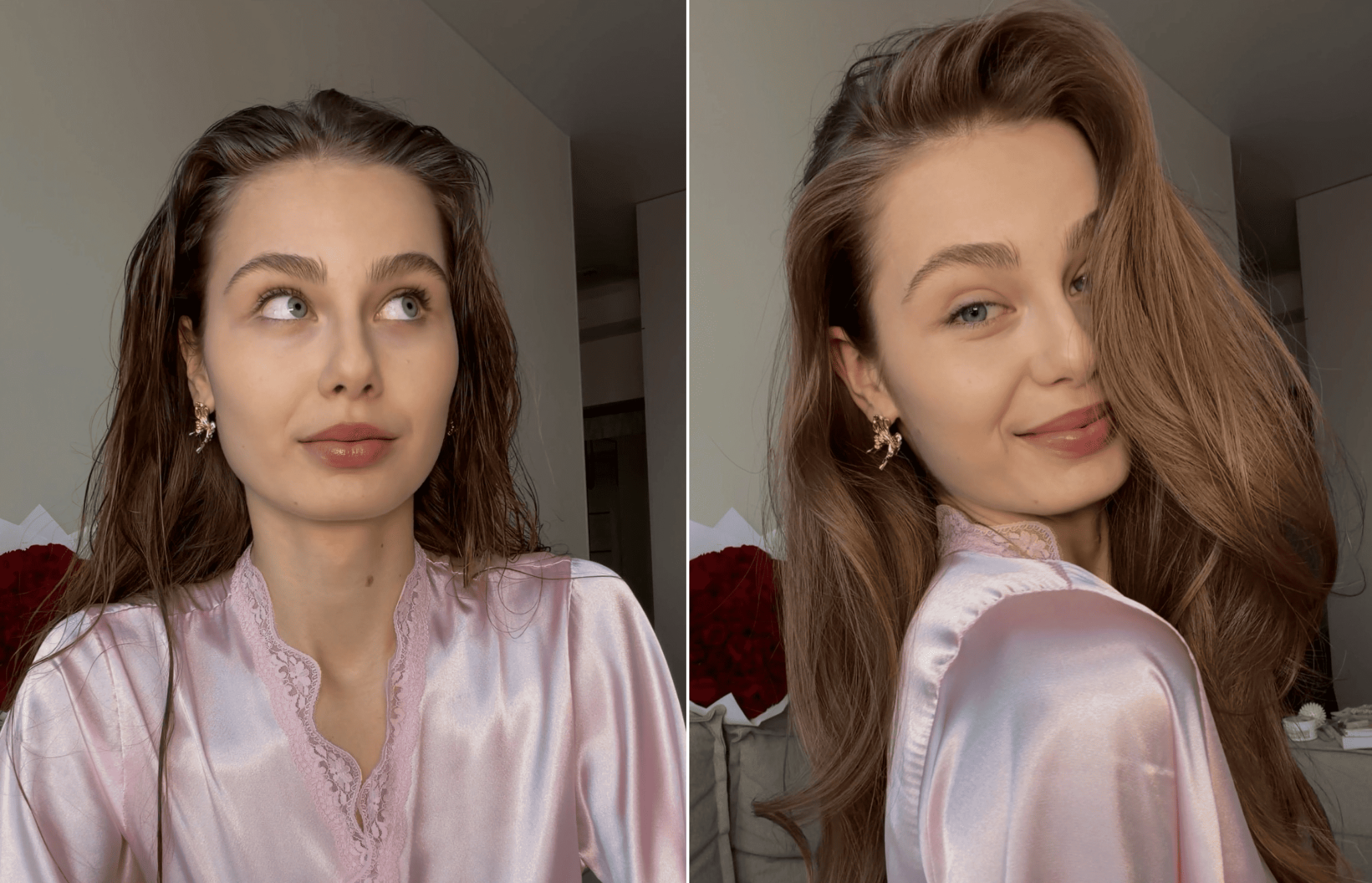 Повторить просто: достаточно подобрать хорошую базу для ухода за волосами — шампунь, кондиционер, термозащиту. Затем высушить волосы феном, создавая лёгкий объём у корней. Можно добавить немного текстурирующего спрея, чтобы волосы выглядели «живыми», а не идеально уложенными.